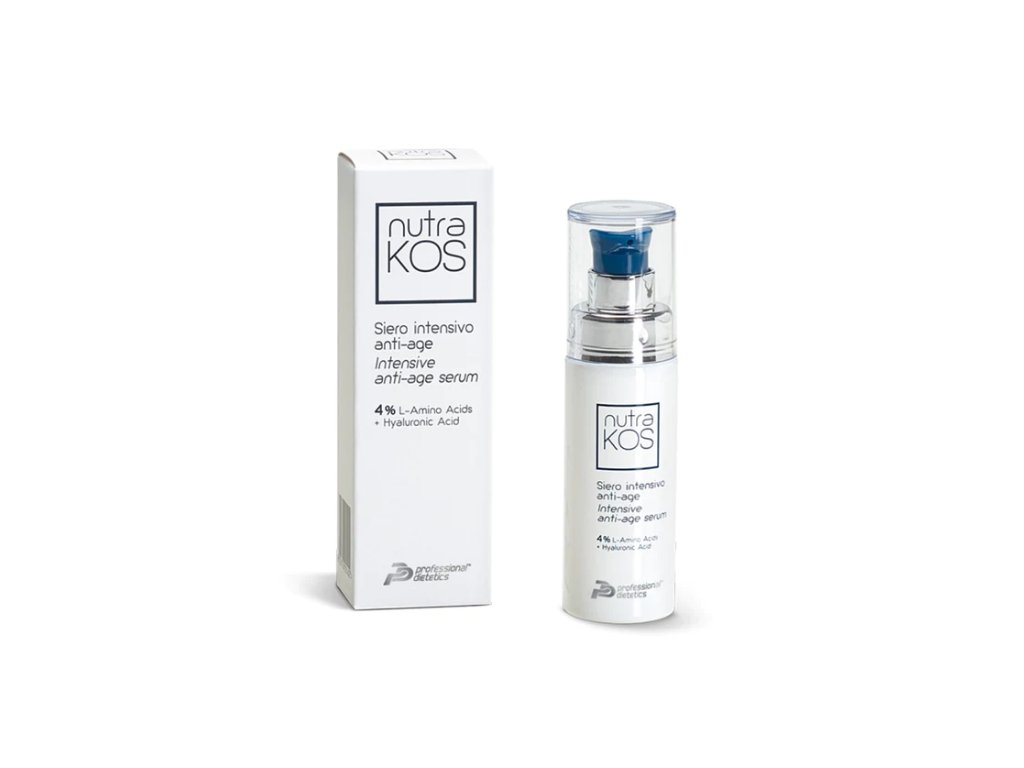 Nutrakos Intensive Anti-Aging Serum se svým složením a komplexními možnostmi ošetření nepodobá žádnému jinému konvenčnímu séru proti stárnutí. Pomocí komplexu aminokyselin, hydratační kyseliny hyaluronové a účinného peptidu lze pleť na obličeji trvale napnout a učinit pružnou. Komplexy aminokyselin , hydratační kyselina hyaluronová a účinné peptidy společně zajišťují trvalé napnutí a vláčnost pokožky obličeje.